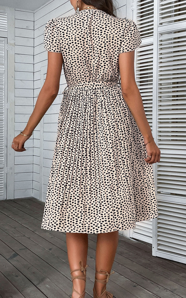 Pretty Leopard Print Angel Sleeve Midi Dress